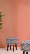 Nestroots Botanic Fabric Wooden Ottomans 17"